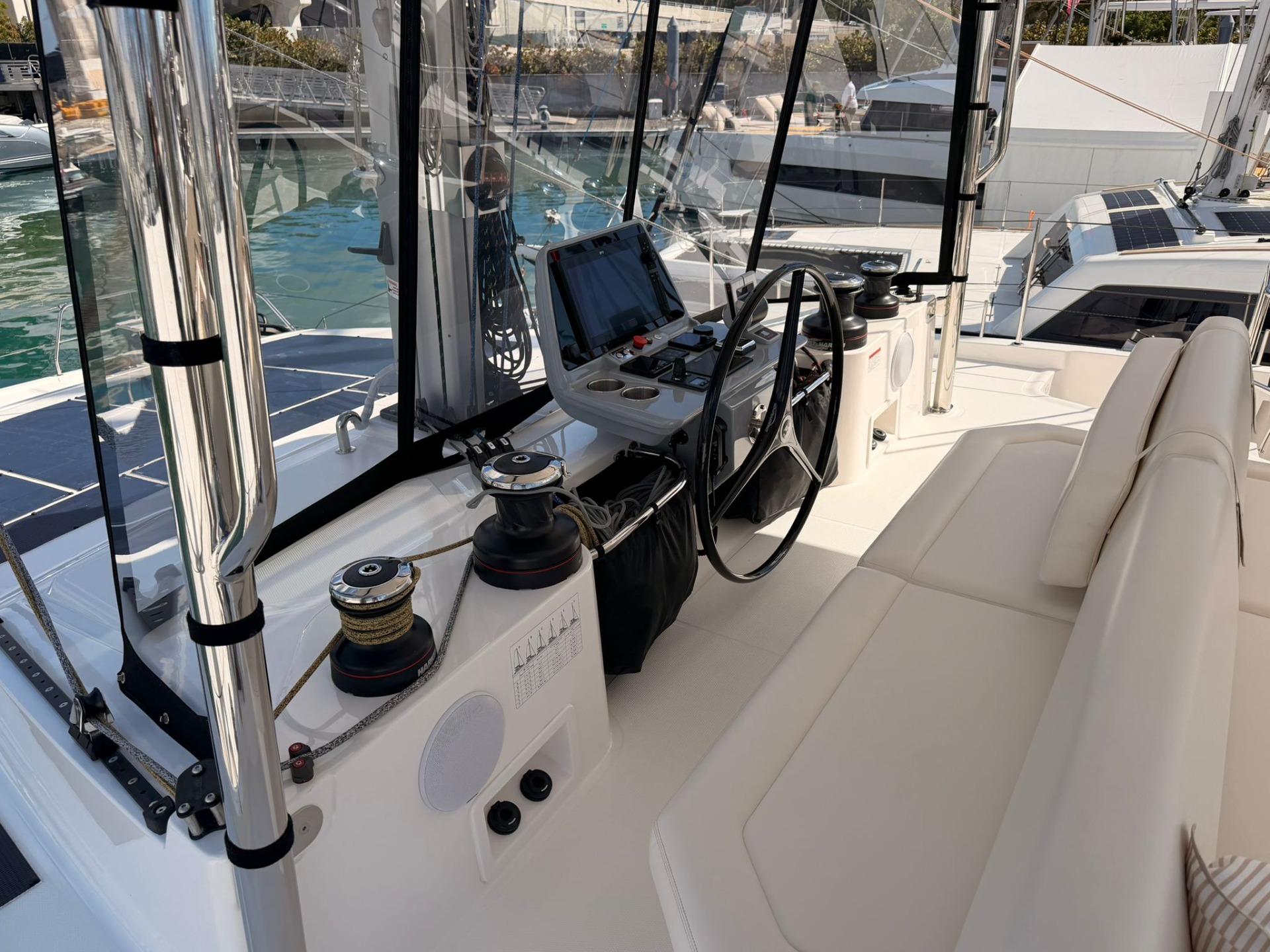 Performance, Innovazione, Qualità. Il tratto distintivo di Aquila si manifesta sia nella forma che nella funzionalità, con caratteristiche come le scale che collegano il ponte di comando a prua per un facile accesso e linee pulite e contemporanee in tutti gli ambienti. Questi nuovi catamarani a vela presentano anche un esclusivo pozzetto fisso a prua che trasforma ciò che altri costruttori trascurano in un'area sociale per eccellenza. Ogni cabina garantisce la massima privacy grazie al proprio ingresso privato, ai servizi privati e alle docce walk-in...